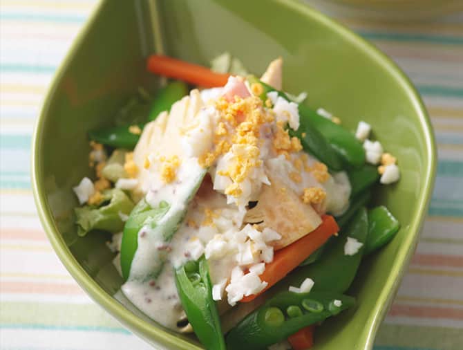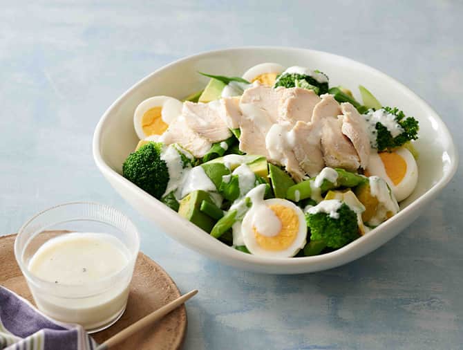 ダイエット中だけでなく普段からオススメなのは、例えばポテトサラダ。マヨネーズをプレーンヨーグルトに置きかえることでカロリーや脂質は抑えつつ、たんぱく質やカルシウムをアップさせることができます。