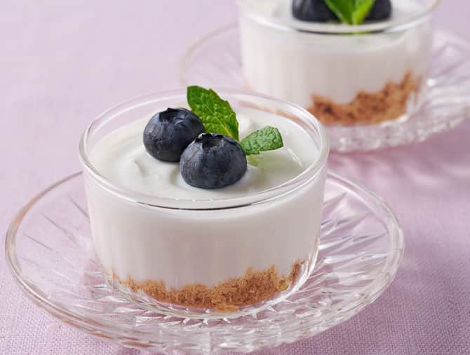 チーズケーキには一般的にクリームチーズを使いますが、水切りヨーグルトでも代用ができます。ヨーグルトで作るチーズケーキはカロリーや脂質が抑えられ、コクがあるのに後味はすっきりしていて、軽やか。スイーツを食べたときの満足感をしっかり感じられます。