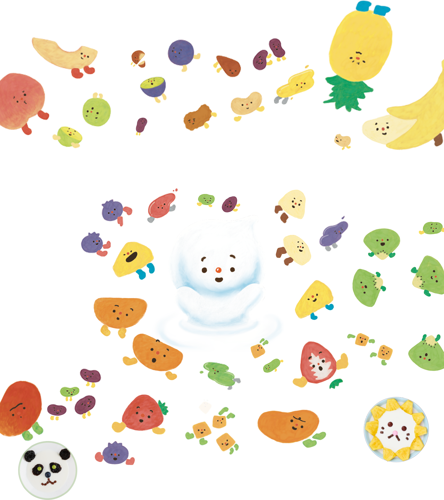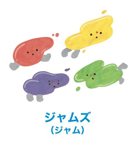 ヨーグルトにぽしゃん!をたのしくおてつだいしてくれるなかまたち“ぽしゃんず”。
