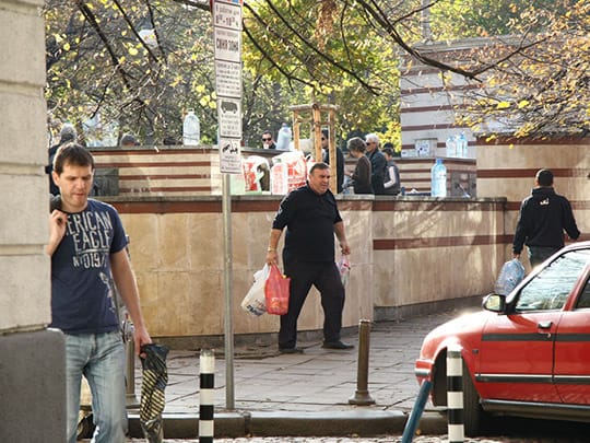 複数のトラムが行き交うソフィアのど真ん中にあるこの「ハリ」には、老若男女を問わず多くの人がこの温泉水を好んで集まってきます。この温泉は胃に大変良いと言われていて、特に週末は大きなペットボトルを何本も持参して汲んで帰る家族連れでいっぱいです。