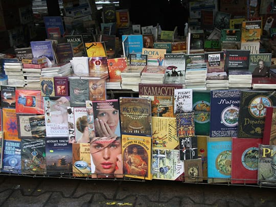 古本を始め、外国の書籍や新書、古典から現代物まで種類も豊富で、値段も日本円で約30円の物もあれば1万円以上するものもあったりと様々です。中にはブルガリア語に翻訳された日本の本もあり、この日は吉川英治の「宮本武蔵」がありました。