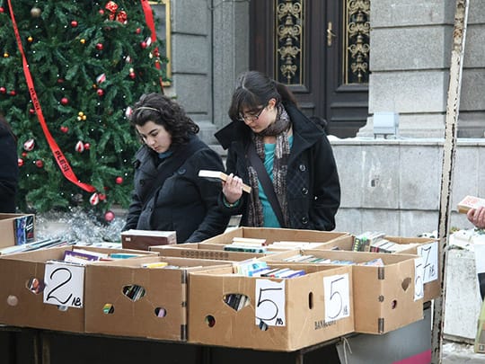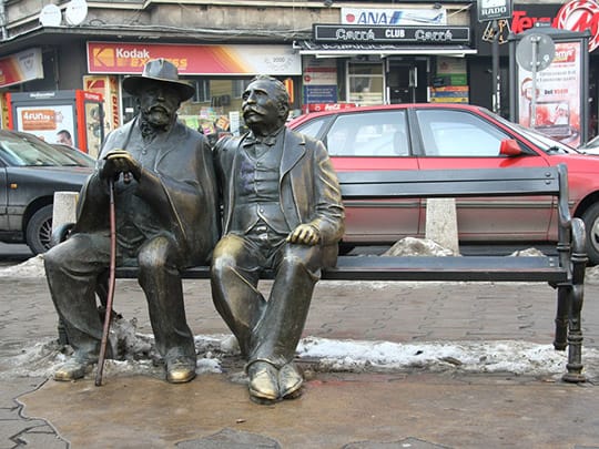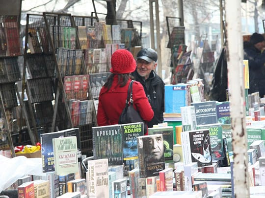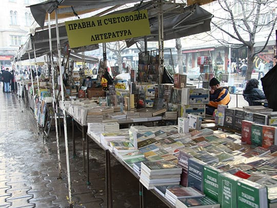 古本屋が立ち並ぶソフィアのスラヴェイコフ広場。ソフィアのセンターに位置し、待ち合わせ場所にもよく利用されます。広場の名前に由来するのは作家のペトコ・スラヴェイコフとペンチョ・スラヴェイコフ。この父子の像が並んで座っているベンチもあり、隣に腰をかけて記念撮影をする光景もよく見られます。