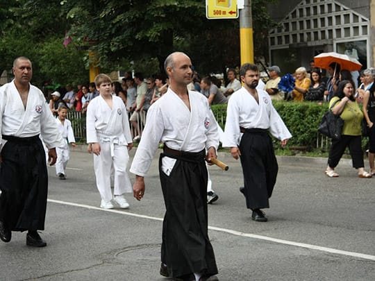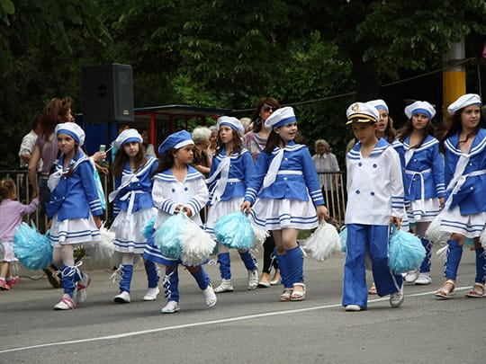 バラの谷からカザンラクの街へと場所は移り、次はパレードです。街の学校やクラブ団体、バラの女王や民族衣装の人達の行進です。時折バラの花びらも振りまかれていました。