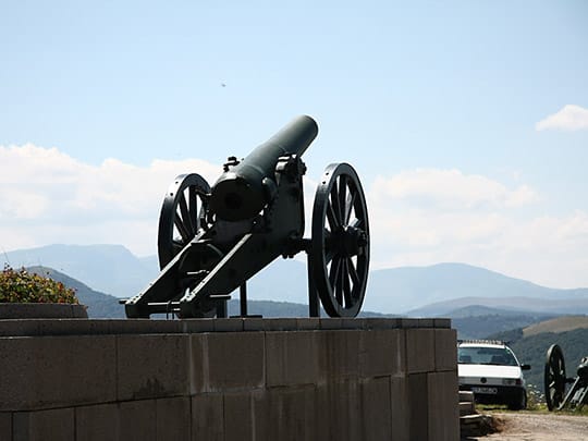標高1150mあるこの峠は、オスマン軍の進攻を防ぐ最重要な要塞でした。ドナウ川からロシアの援軍を待つ間、2000人のロシア兵士と5500人のブルガリア人民間兵によるたった7500人の連合軍が38万人のオスマン兵を相手に攻防し、見事要塞を死守。この戦いでは、峠を攻め上がって来るオスマン軍に向かい、ブルガリア・ロシア連合軍は弾の切れた銃を投げ、石を投げ、最後には死んだ兵士の死体を投げて攻防したと言われています。現在シプカ峠にはこの戦いを記念するモニュメントが建てられ(上図)、険しい峠の山頂には十字架がそびえ立っています。