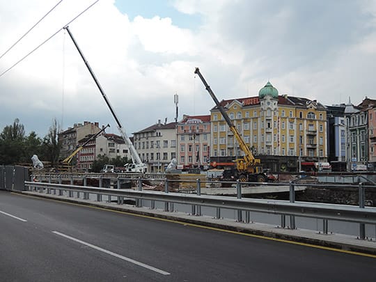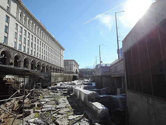 しかし昔通り過ぎていった文明はいまだに現実問題です。首都ソフィア市内では、中心部の交通渋滞を緩和するために主要道路を工事していますが、工事を始めるとすぐに古代の遺跡を掘り当ててしまいます。ロボフ・モスト(ライオン橋)という市の一番の目抜き通りにかかる橋。ここは昔から度々橋が架け替えられていたそうですが、ひとたび貴重な遺跡が出てきてしまうと工事は一旦中止せざるをえません。