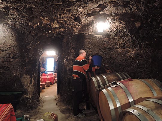 ここは今も洞窟をワインの貯蔵に利用していて、観光客に公開しているところがたくさんあります。そんなワインセラーの一軒の主人にメルニックワインについて尋ねるとノリノリになってしまい止らなくなってしまうほどです。試飲も入場料に含まれています。