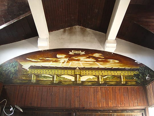 前にあった橋の基本的な形は残しつつ、頑丈なつくりのものに架け替えられました。資材も工夫され、鉄ではなく木の接合部品が使われていたそうです。そしてこの橋はその当時から商店街としてにぎわっていたそうです。