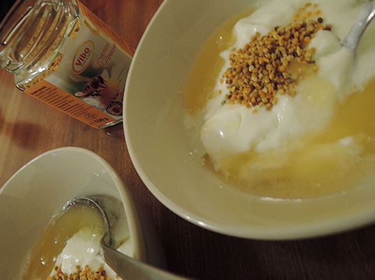 5月は夏の始まりで、ミツバチにとってはおいしい花の蜜の集め時。プラムやリンゴの花はほころび、アカシア、リンデンの木からは甘い香りが広がります。草原も小さなハーブの小さな花たちが美しく咲き誇ります。働きバチたちはまめまめしく花から花へと蜜を集めます。ブルガリアでは養蜂がとても盛んで、職業としての養蜂業者もたくさんおり、市場で自分のところで採れたいろいろな花の種類の蜂蜜を並べて販売する個人業者もたくさんいます。そしてこの時期、ソフィア中心部の「バーニャ・バシ・ジャーミヤ」の広場や、ショッピングモールのエントランスなどで蜂蜜フェアーが開催され、蜂蜜だけでなくプロポリス(ミツバチが生成する樹液状の固形物で、抗菌作用がある。)やビーポーレン(ミツバチが集めた花粉の塊で、ミツバチが分泌する酵素等も含まれている。)、蜜ろう(ミツバチが巣をつくるために分泌するもの。)など自分のところで採れた製品を宣伝しながら販売しています。