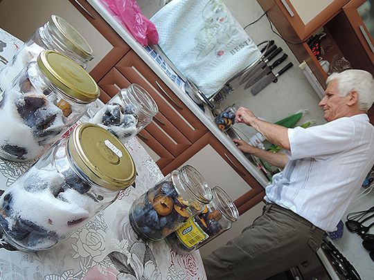 この時期、各スーパーではジャムやシロップ漬けのために砂糖をセールで提供するので、人々はショッピングカートいっぱいに砂糖を購入していきます。あまりに売れすぎて、あっという間に山積みの砂糖が売り切れてしまいます。もうすぐ来る寒い季節でも、ビンのふたを開けると陽の光を浴びて甘く仕上がったフルーツを楽しめる・・・そうやって長い冬を切り抜けるというのも、ブルガリアのライフスタイルと言えそうです。