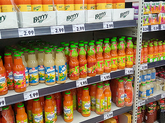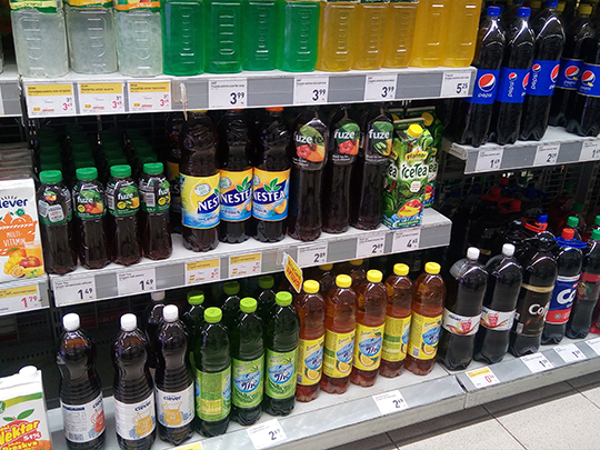 スーパーでは、水で溶いて飲む粉ジュースがとても安く手に入ります。炭酸飲料も種類豊富で安いです。でも私は人工的な味が苦手なのであまり口にしたことがありません。野菜ジュースも日本と違い、多くの砂糖が入っていて、とても甘いです。日本の「微糖」や「無糖」の文字が恋しくなります。