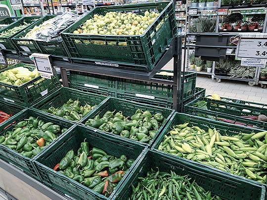 スーパーで売っている唐辛子とピーマン。