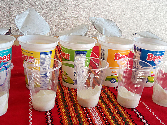 また、牛乳から作るだけでなく、ヒツジやヤギの乳から作るヨーグルトも売られています。それらには脂肪分の割合の種類はありません。一般的に売られているブルガリアのヨーグルトは400グラムで、パッケージはプラスチックのカップに、アルミニウム素材のふたというのが定番です。市場でプラスチックのふたで売られていることがありますが、まれです。