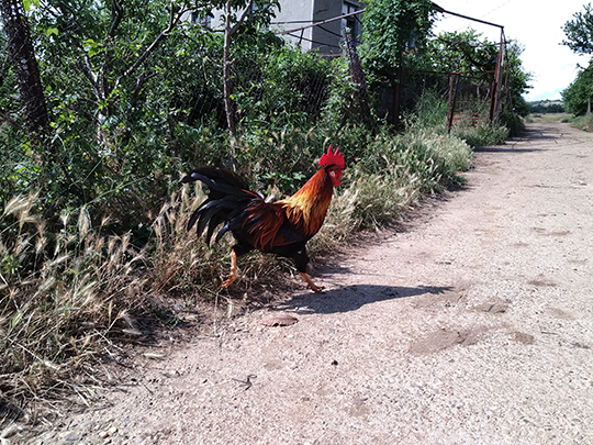 村の中で出会った雄鶏。3時くらいから鳴き始める