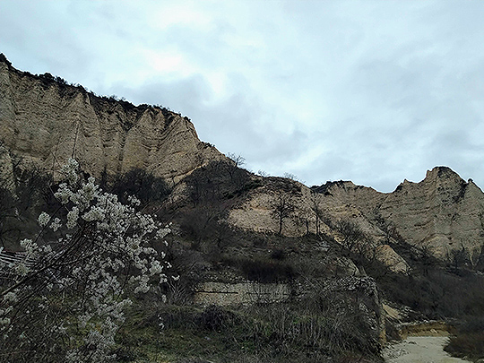 メルニック滞在中に、ロジェン(Рожен・rozhen)という隣の村に山道を通って行く片道2時間半の散策コースを楽しみました。その村にある中世の時代に建てられたロジェン修道院に行きたいと思っていたのですが、オフシーズンのためか、あと700メートルというところで道が崩れて通れなくなっており、結局、行くことができませんでした。メルニックーロジェン間は車道もあり通年バスが通っていて10分くらいで行けるそうですが、今回は山道を歩いたために行けず、とても残念でした。