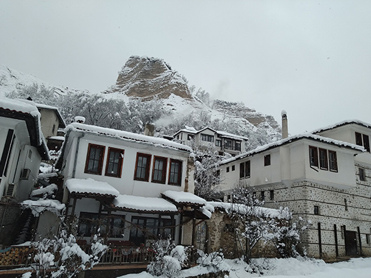 メルニックはブルガリアの中で暖かい地域ですが、今回は冬だったこともあり、訪れた日に雪が降ってしまい、気温の違いをあまり感じられませんでした。ひとけがなく、見たかったワイン博物館も閉まっていました。しかし、この一回の旅行で、通常の町の写真のほか、雪化粧されている町の写真も撮ることができました。天気には恵まれませんでしたが、景観はとてもきれいでした。