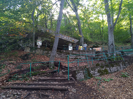 スネジャンカ洞窟はコロナ前から行ってみたいと思っていた場所で、今回やっと願いが叶い、友人と車を走らせました。駐車場からスネジャンカ洞窟までは、山の傾斜を登っていく散策コースがつくられています。ブルガリア語で「息を深く吸って!」や、「あともう少し!」などの励ましの言葉が書かれた看板があちこちにあり、30分くらいの道を休憩しながら楽しんで登ることができました。