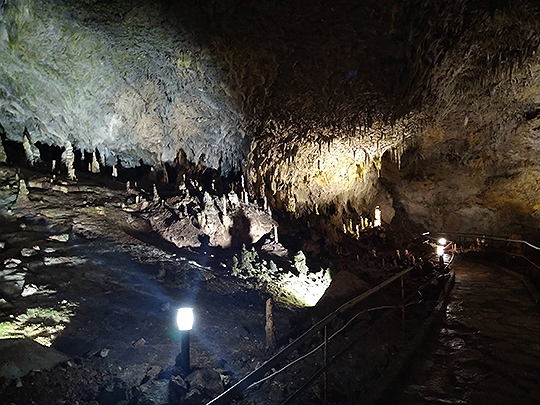 大広間と呼ばれる場所は長さと幅がそれぞれ60mと48mあり、天井までの高さは18m。その巨大な空間に圧倒されました。ガイドさんが、レーザーポインターと懐中電灯で石を照らしながら名前を紹介し、最奥のホールでは洞窟の名前の由来にもなっている白雪姫に見える石も紹介されました。しかし、私の想像力がないからか、石と名前の関係を何も理解できず、一つも覚えられませんでした……。