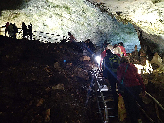 洞窟内は、1年を通して8.5度を保っていて湿度は98%もあるそうです。一年中訪れることができ、ツアーガイドさんが案内をしてくれます(現在はブルガリア語のみでの対応)。内部は6つのホールで構成されていますが、旅行者には4つのホールまでが解放されています。急な階段や狭い通路、濡れて滑りやすい地面と大変な一面もありましたが、さまざまな形をした大きな鍾乳石がたくさんあり、今でも成長し続けているのを間近で見ることができてとても興味深かったです。