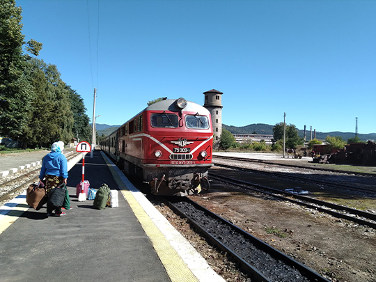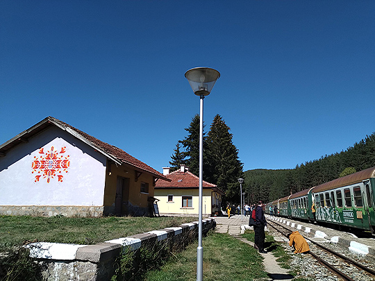 アブラモヴォ駅はバルカン半島で一番高いところにある駅で、海抜1267mに位置しています。この駅から山登りに行く客も多くいます。リラ山脈とロドピ山脈の間を走っているので標高が高く、ジグザグと山道を登っていくのは面白いです。途中、車道と線路が並んでおり、車と並走して走ることもあります。冬の間は暖かい車内から雪景色を楽しむことができ、また特別な日には、蒸気機関車を走らせるイベントも行っています。私が行ったときは、緑が美しい季節を楽しむことができました。