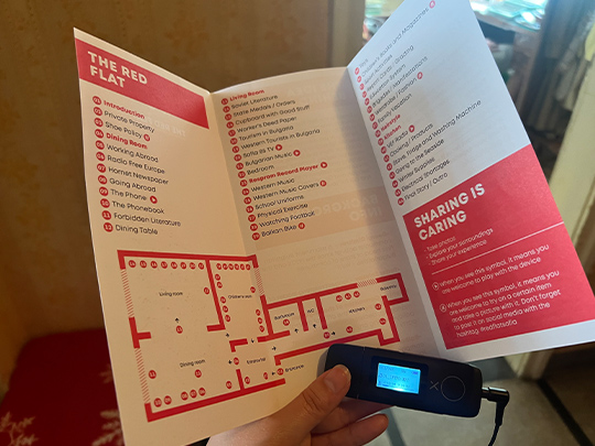 当日、施設の事務所で受付をしてオーディオガイドを受け取り、係の人がアパートへ案内してくれます。ブルガリア語か英語、スペイン語で音声を聞くことができます。