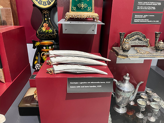 品物はどこの国から贈られてきたかが明記されてはいるものの、「頭字語(とうじご)」で書かれているため、知識がないとまったく分かりません。例えば、ソビエト社会主義共和国連邦はブルガリア語で「Съюз на съветските социалистически републики」ですが、博物館の説明文では頭字語の「СССР」と表記されています。一緒に訪れた友人は共産時代に育ったためその知識があり、一つひとつ私に説明してくれました。