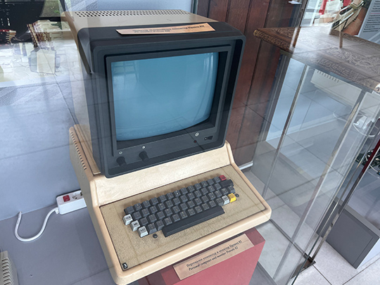 また、プラヴェッツには共産主義時代、ブルガリアの初期のコンピューターを牽引した会社があったことでも知られ、そのコンピューターの展示も見てきました。学芸員の方が、その時代には日本のキーボードも作っていたことがあると教えてくれました。ここは1989年から今も開催されている国際情報オリンピックの第一回が開催された場所でもあります。現在はコンピューターの会社はありませんが、その建物はそのまま残っています。トドル・ジフコフ時代に建てられた立派な建物も、今ではきちんと管理をされている印象はなく、ひっそりとした小さな町になっています。