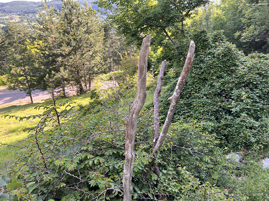 杖にちょうどいい棒が植物の茂みにさしてあった