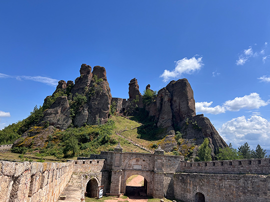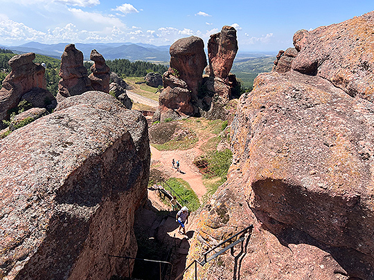 急な階段を何段もあがり、岩を登っていきます。昔は、現在のような鉄製の階段や手すりが設置されていなかったそうです。登り切った頂上からは、面白い形の岩が切り立っている姿や町を眺めることができます。山が延々と続いているバルカン山脈を目の前にし、この山々が黒海まで続いていくのかと海に思いをはせました。この山脈の反対側は、セルビアの国境を越えて続いています。