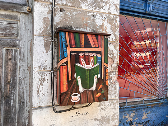 一番高い岩は200メートルほどあるため、町のどこからでも石群が見えます。そのため、2000年の歴史を持つ要塞の存在をいつも感じることができます。歴史を通じて地震が少ない山脈なので、現代まで残った貴重な風景です。その一方で、ベログラトチクの町では、電気メーターボックスにペイントをほどこす取組みがあり、町中に面白いアートがあふれていました。