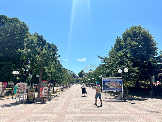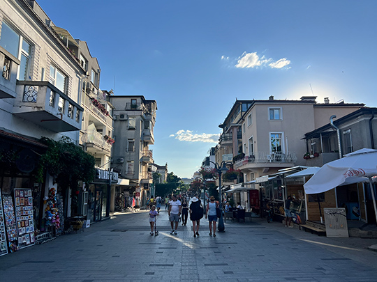 黒海沿岸の町・ブルガスは、古代から交易の重要な拠点として栄えてきた歴史を持ちながら、今でも港町らしい開放感と活気であふれています。中心部には歩行者天国が続き、カフェやショップが軒を連ねています。夏のバカンスシーズンになると、観光客と地元の人でいっぱいになります。名物の「цаца(ツァツァ)」という小魚のフライや地ビールを味わいながら、海辺の散歩を楽しむのもおすすめです。歴史、食、ビーチまでそろったブルガスは、気持ちよく散策を楽しめる港町です。