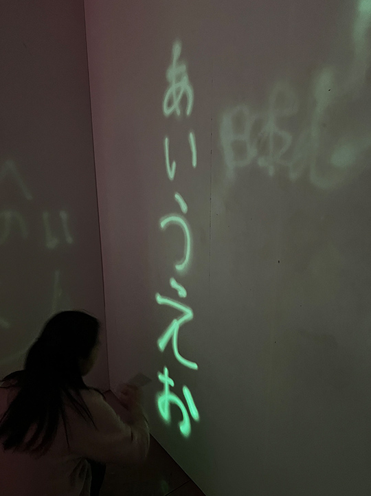 ペン型のスティックで壁に自由に文字などが書け、10秒ほどで徐々に消えていく