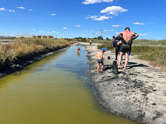 この湖は黒海沿いの都市・ブルガスの隣に位置し、潟湖(せきこ※湾口に発達した砂州などにより外海と切り離されて生じた浅い湖)であり塩湖でもあります。湖には「ルガタ(Лугата, Lugata)」という場所があり、入場料を払うと湖の湖面に浮かぶことができたり、草地で泥パックを体験したりできます。泥はかなり強い異臭がありますが、筋肉や関節の疾患、神経痛、皮膚疾患に効果があるとされており、私も服から肌が出ている部分にだけ塗ってみました。刺激が強いため、顔には塗らない方がよさそうです。また、空腹時や飲酒後は入浴を避け、高血圧や心臓疾患のある人も注意が必要と書かれていました。
