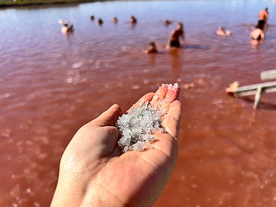 湖の水底をすくってみると大きな粒の塩