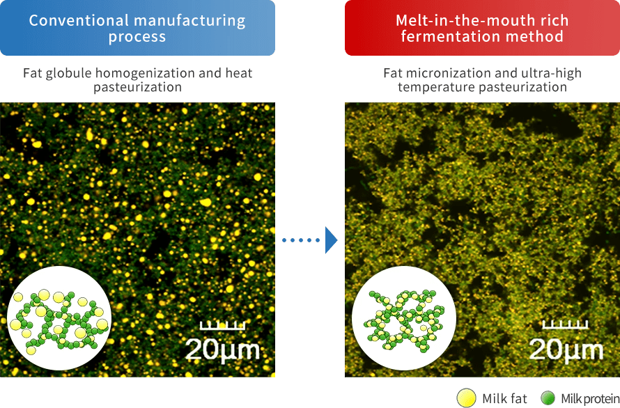 "Ultra-high temperature pasteurization" creates a finer, denser, more delicate network than conventional methods, enhancing the melt-in-the-mouth texture and smoothness.