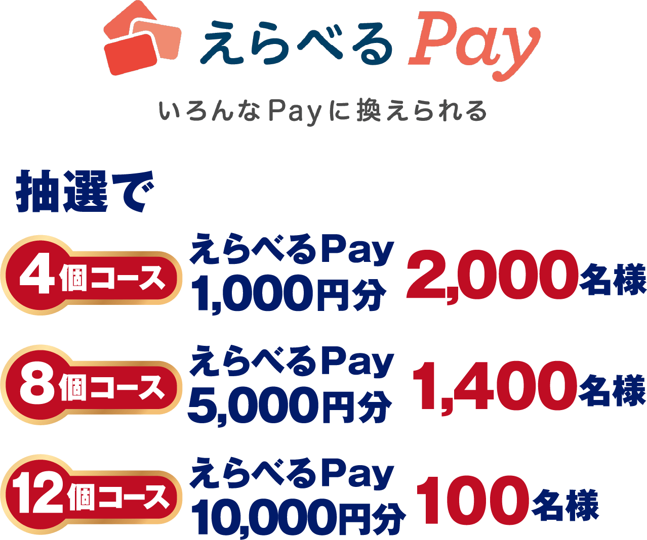えらべるPayは、ポイントやPay系の商品を自由に選べるギフトです。ポイント内であれば複数のギフトと自由に交換することができます。
