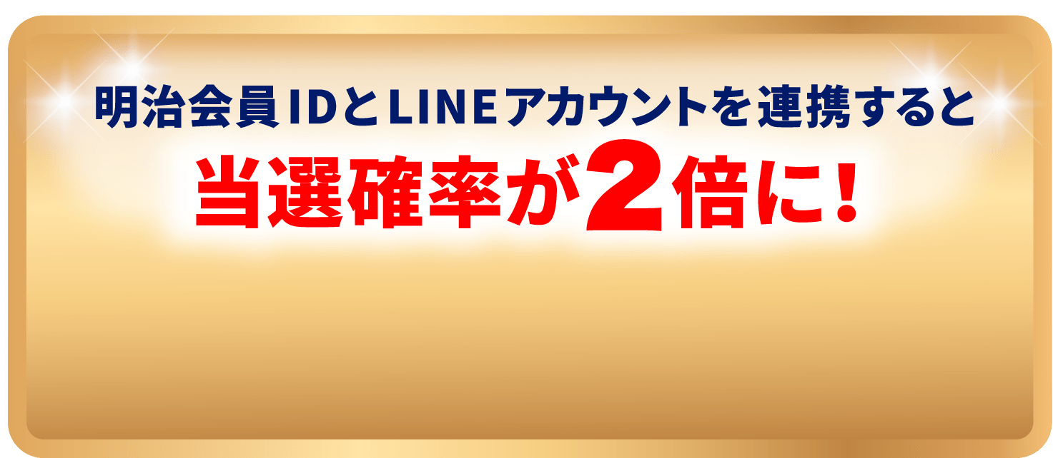 明治会員ID連携エントリー期間中に、明治会員IDとLINEアカウントを連携すると、当選確率が2倍となります。