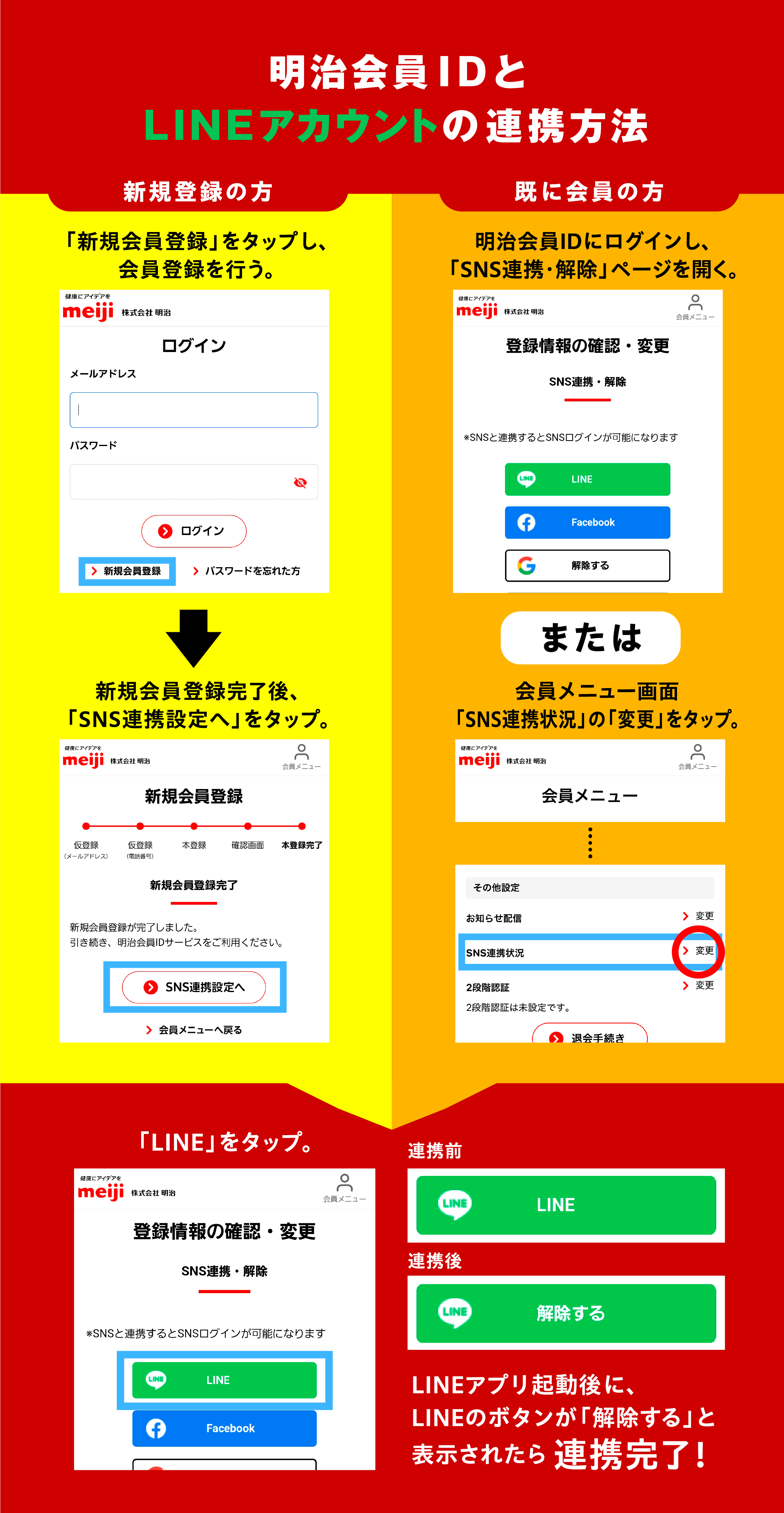 明治会員IDでログイン後、LINEアカウントと連携してください。