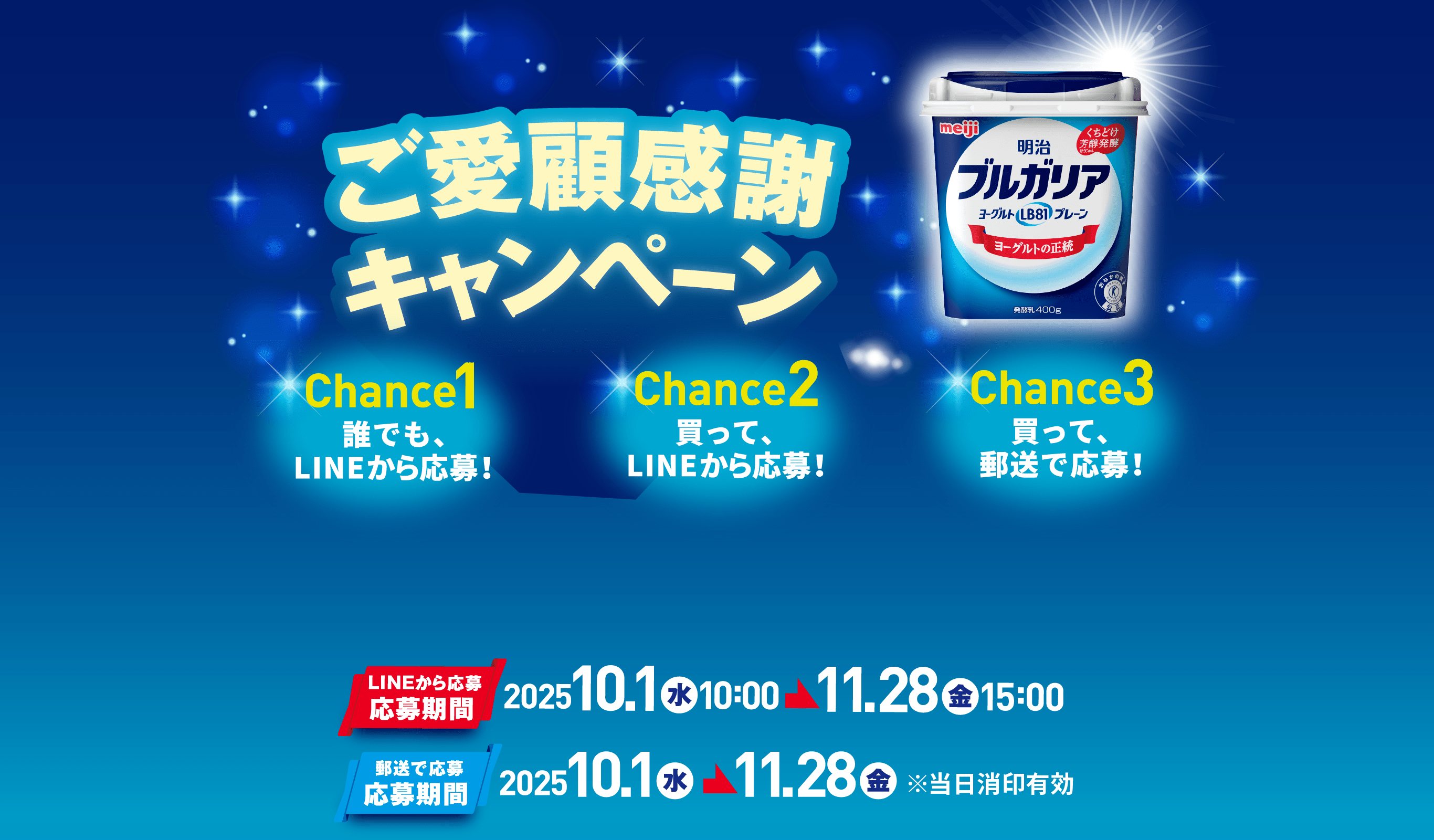 ※応募後に明治ブルガリアヨーグルトLINE公式アカウントをブロックされると当選連絡ができなくなりますので、ご注意ください。