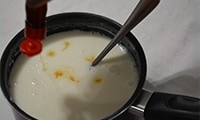 3に牛乳、キャノーラ油、強力粉を入れて混ぜる。