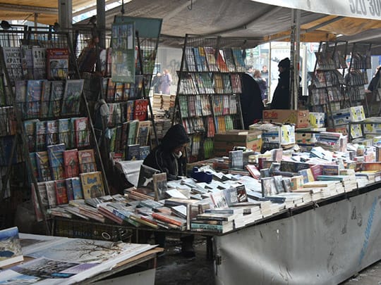 立ち並ぶ売り場の中で、夫が高校生だった時によく通っていたという古本店の店主が今も健在で本を売っているのを偶然発見しました。彼はある日、頻繁に古本を買いに来る夫を自宅に招待し、膨大な書籍コレクションを見せてくれたことがあるそうです。本を愛し続け、誇りを持って人々に紹介し続ける真摯な姿に感動しました。