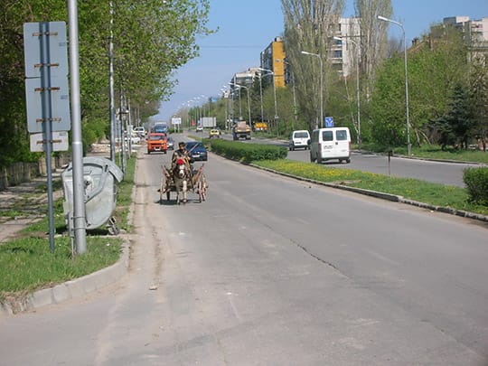 これほど動物を見かけるのはシューメンが比較的田舎だからかと思っていましたが、首都ソフィアでも山羊や羊こそあまり見かけませんが荷馬車を目にするのは変わりません。朝方など馬のひづめの音がパカパカと聞こえてきたり、公園に馬がいるのを見たり、少し郊外へ行けば牛なども道を歩いています。道路を横断中の馬を待つために車を止めなければならないこともあったり。