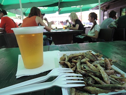 夏の時期のビールのおつまみは「ツァツァ」です。小魚のから揚げなのですが、これがまたビールにぴったり!! 魚を家で揚げると家に臭いがこもるので、これは外で食べるのが定番です。