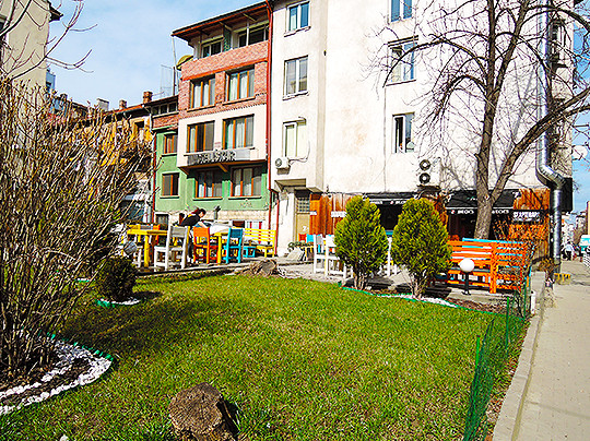 今度は、路面電車に沿ってセルディカ駅方面に戻ってみましょう。線路はドンドゥコフ通りから裏道に入り込み、温泉の湧くチェシマ、そして昔からの中央市場「セントラル・ハリ」へと向かいます。路面電車沿いには、ビジネス街らしくリーズナブルなランチを出すお店が軒を連ね、官庁や会社のオフィスで働く人たちが行列を作ります。