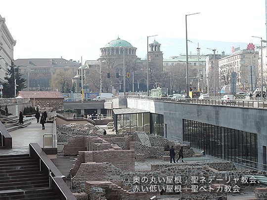 実はソフィアで観光客のミーティングスポットとしても有名な「アレキサンダー・ネフスキー寺院」は露土戦争でのロシア人戦没者を弔う教会。近くにあるロシア正教の「聖ニコライ教会」と共に屋根が金ピカできらびやかなのに対し、すぐ近所にあるこの都市の名前の由来となった「聖ソフィア教会」や、目抜き通り「マリア・ルイーザ大通り」と「ヴィトシャ大通り」を分ける「聖ネデーリャ教会」は地味な日陰感がします。