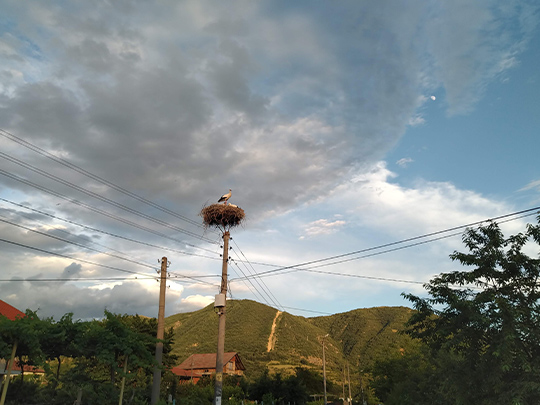 村内では山羊や羊、鶏が飼われており、夏の間はコウノトリも電柱に巣を作っていて、雛の成長を見ることができました。まるで動物園に住んでいるような気持ちにさせてくれます。
