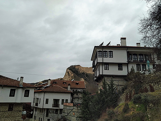 ブルガリアの首都・ソフィアよりも、ギリシャの第二の都市・テッサロニキに近い南西の町メルニックは、ブルガリアの行政区分で一番小さい「市」としても知られています。人口は約160人(2020年12月現在 国立統計研究所 人口統計調査参照)。周囲を山々に囲まれていて、町のどこからでも奇妙な形の砂岩を建物の背後に見ることができます。また、1階より2階、2階より3階と、上の階が広い造りの伝統的なブルガリアの家が保存されていて、昔ながらの町並みを感じられます。