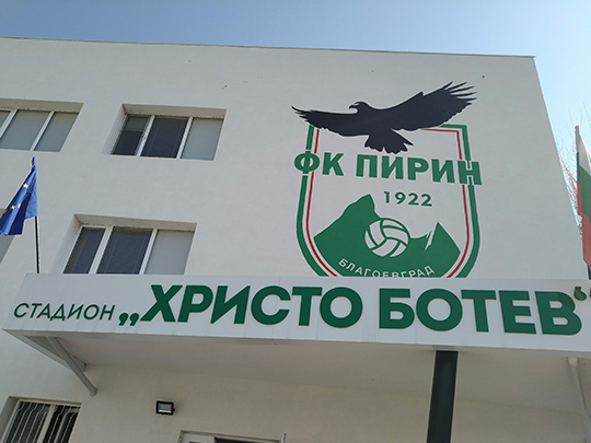 ブラゴエフグラッドの街の外れには、7000人収容できる「フリスト・ボテフ」(Христо Ботев,Hristo Botev)と呼ばれるスタジアムがあります。スタジアムは、ピリンのチームカラーである緑色を基調とし、建物の壁にはチームシンボルである鷹が大きく描かれています。このチーム名やシンボルマークは、ブラゴエフグラッドがピリン山脈の麓にあること、そしてその山から飛んできた鷲の一匹がこのチームになった、という意味が込められているそうです。
