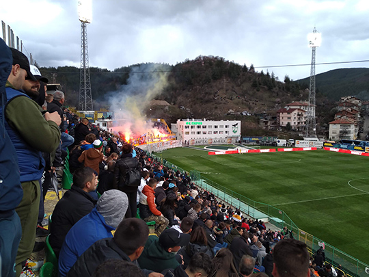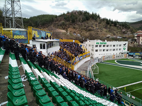 ブルガリアで一番メジャーなスポーツといえばサッカーです。毎日のようにヨーロッパ中のサッカーの試合がブルガリアのテレビで放映されるため、家庭でよく観られている印象があります。ブルガリア国内のプロサッカーリーグは2部制で、私が住んでいるブラゴエフグラッドには、1部リーグに所属している「ピリン」(ФК Пирин,FC Pirin)というサッカーチームがあります。1922年に設立され、今年の6月にちょうど100周年を迎えます。今年から2名の日本人選手がピリンに所属したと知り、興味が湧いたのでさっそくサッカー観戦に行ってみました。