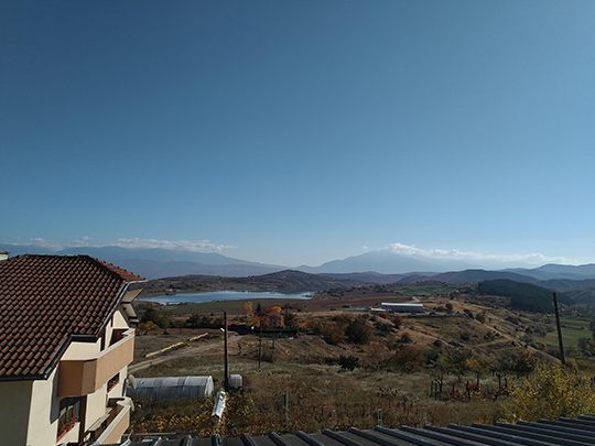 ワイナリーから見えるロゴダジ貯水湖、リラ山脈、ピリン山脈