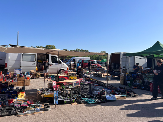 一方、マリツァ(Марица, Mritza)パークという巨大な公園では、毎週、日曜日になると、ビタク(Битак, bitak)と呼ばれるフリーマーケットが開催されます。主に自動車の部品が売られ、ビニールシートや段ボールの中に、古いものが山積みに置かれています。また、この市場は公園の一部で開催されているため、公園の散歩がてら訪れることができます。公園の隣には巨大なベンチやランプ、机や椅子などが置かれ、写真スポットにもなっています。